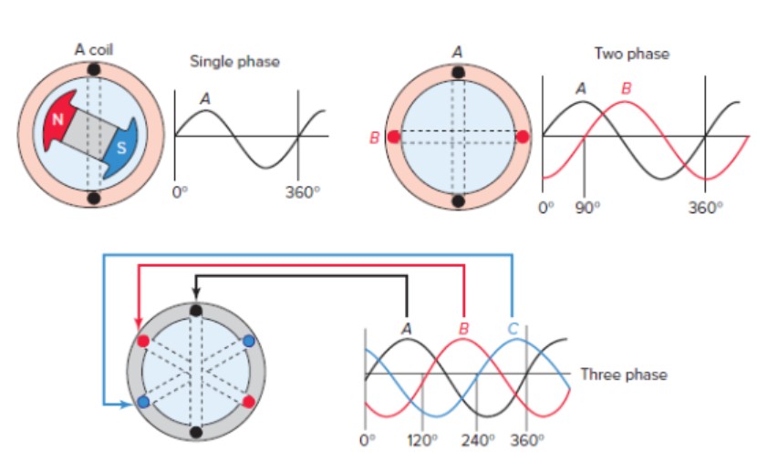 삼상 교류(Three-Phase AC)는 세 개의 교류 전압이 같은 크기로 만들어지지만, 시간차를 두고 발생하는 전력 시스템입니다.