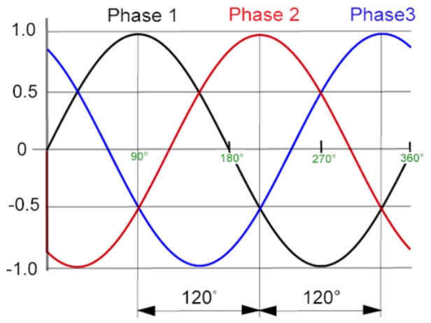 ✅ 3개의 전압이 120도씩 차이를 두고 발생